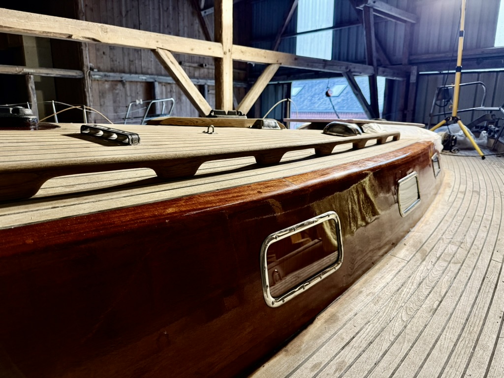 Meine Frau und ich segeln die Auguste auf der Ostsee, Heimathafen ist Flensburg. Seit 2025 arbeiten wir an einem umfangreichen Refit — von den Borddurchlässen über den Lack bis zur Elektrik. Nach acht Jahren in der Halle segelt sie ab Mai 2026 wieder durch die Flensburger Förde und die Dänische Südsee. Immer dabei ist unser Bordhund Jule, ein English Docker Spaniel.