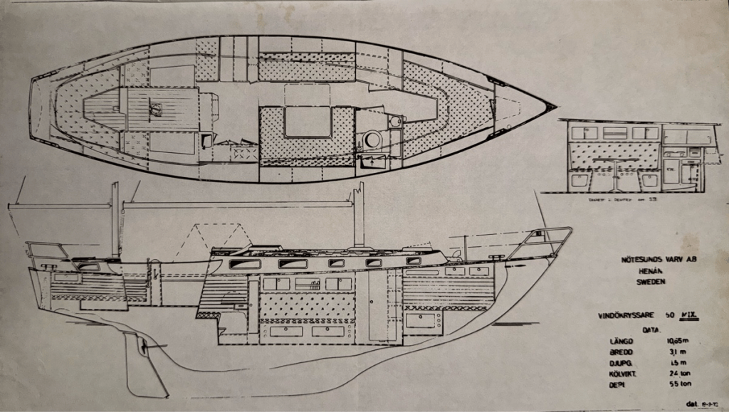 Die Auguste von Orust ist eine Vindö 50 SL(*), gebaut 1979 auf der Nötesunds Varv in Kungsviken auf der schwedischen Insel Orust. Eine Ketsch mit Langkiel, zehneinhalb Meter lang, sechseinhalb Tonnen schwer, mit einem GFK-Rumpf und Aufbauten aus Mahagoni und Teak. Ein Holzboot mit GFK-Rumpf. Ein Boot aus einer Zeit, in der Bootsbau noch ein Handwerk war, kein hochoptimierter Fertigungsprozess.