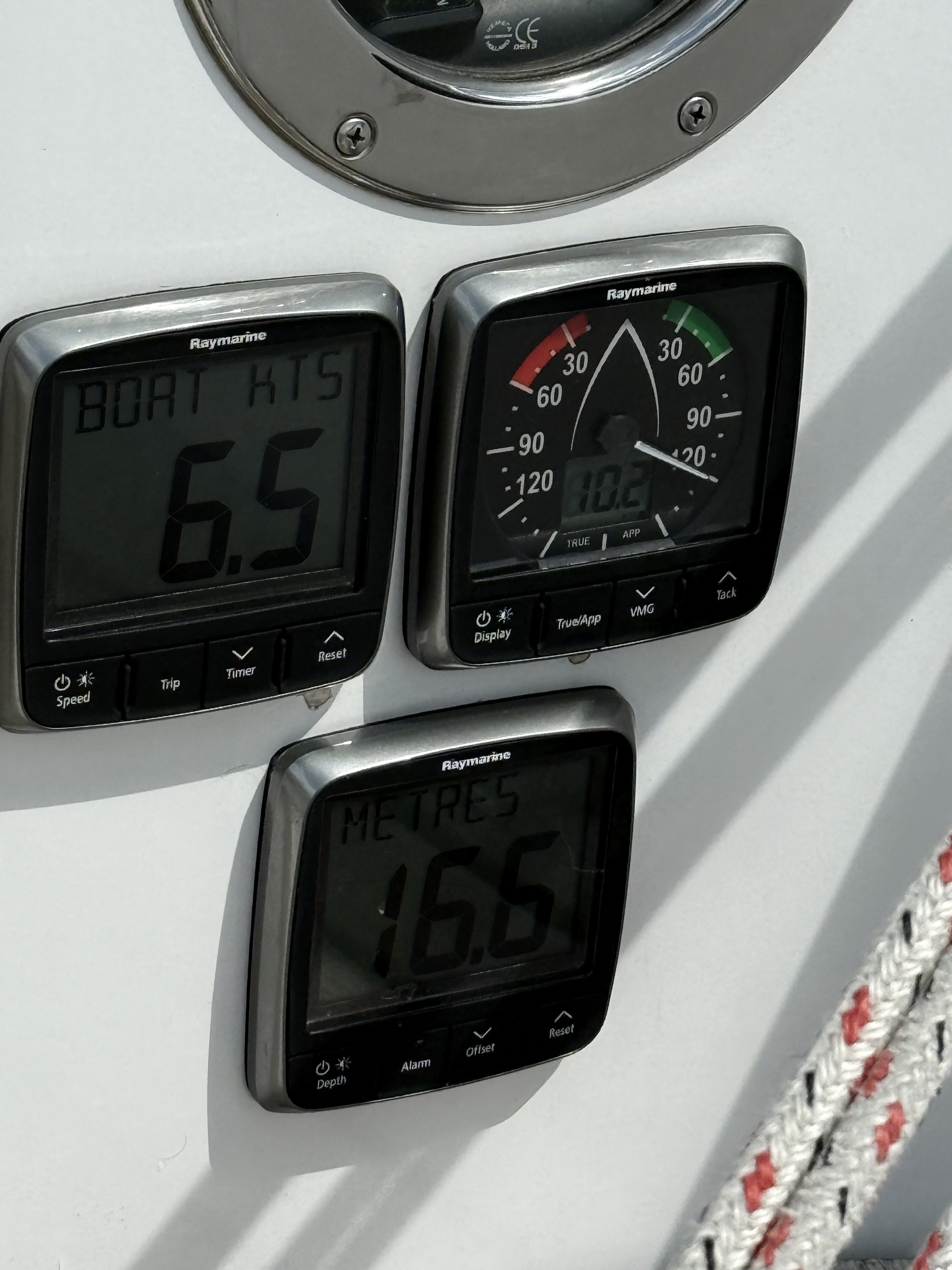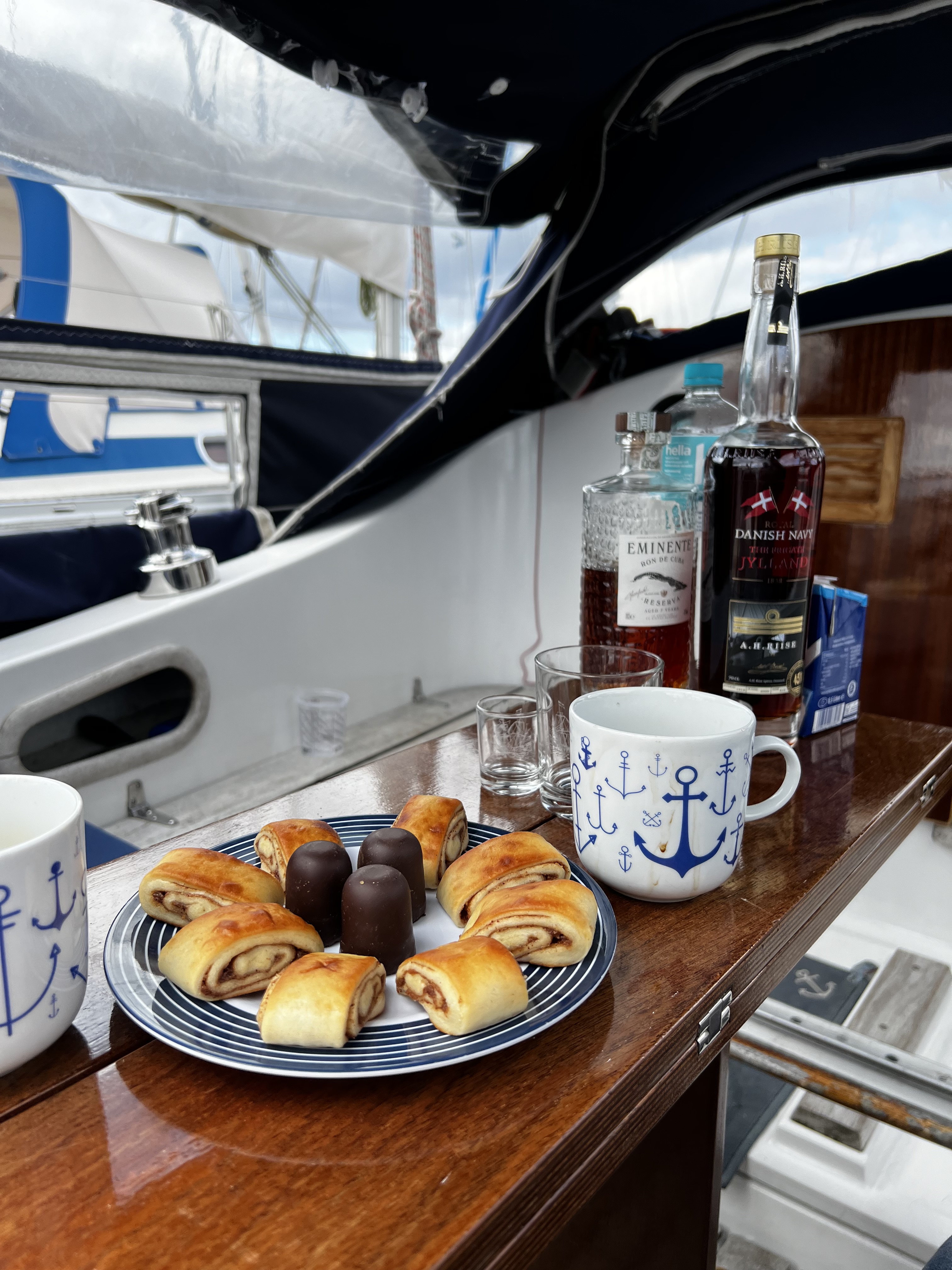 De Kloet hat die Fellowship mit einem „Binnen-Rigg“ und einem „See-Rigg“ angeboten. Die Lille hat das See-Rigg, ist damit wie man so schön sagt etwas untertakelt, was in der Praxis schlicht bedeutet, dass man selten reffen muss (wir sind auch bei 24kn Wind schon mit Vollzeug über die Förde gebrettert), bis 7kn Wind aber keine echte Freude aufkommt, bis man den Blister setzt. Aber irgendwas ist ja immer.