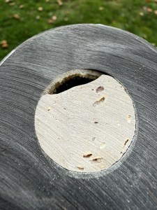 Als wir die Logge dann herauszogen, wurde schnell klar, was passiert ist: Das Laufrad der Logge ist – vielleicht beim Kranen? – abgebrochen. Statt Rädchen oder Loggeber zu ersetzen, wurde dann mit irgendeinem Spachtel die Öffnung unten verschlossen. Wobei „verschlossen“ das falsche Wort ist…