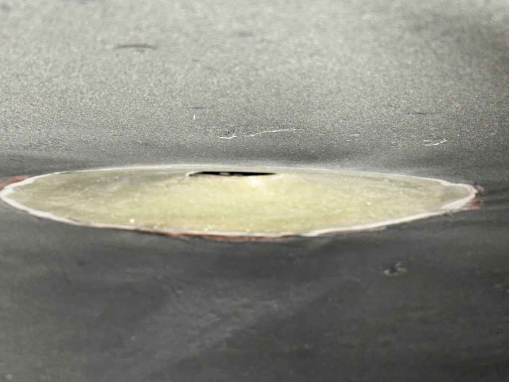 Einmal glatt schleifen, und dann mit Epoxy-Spachtel in Erdnussbutter-Konsistenz (also etwas zäher als im Bild) verspachteln. Dann wieder Abreißgewebe, schleifen und bei Bedarf erneut spachteln. Wir waren danach erstmal zufrieden.