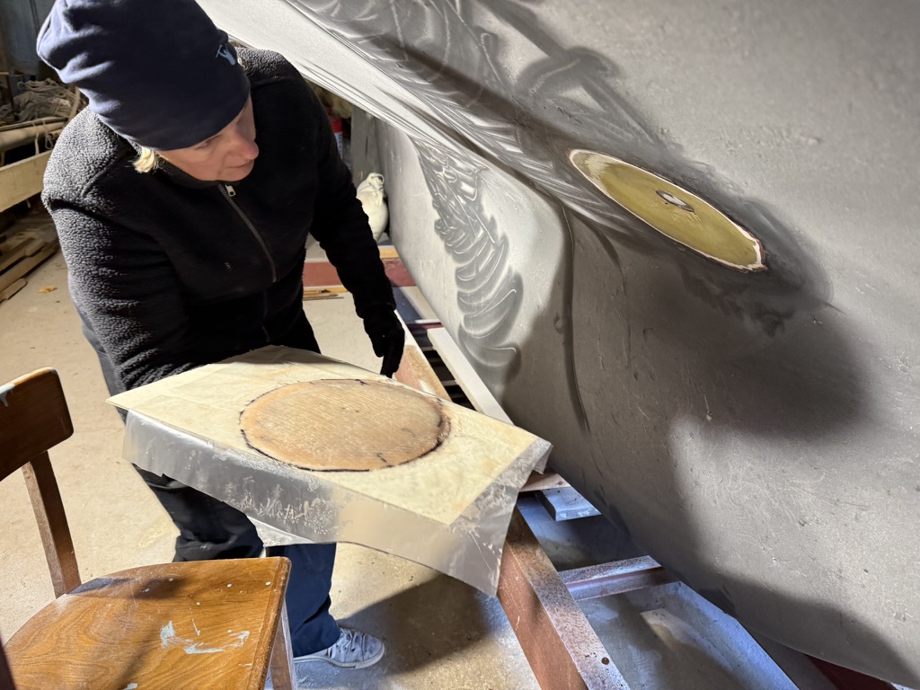 Was wir schon bei der Übergabe gesehen haben: Einer der Durchlässe an Bord war zugespachtelt. Merkwürdig. Das müsste doch die Logge sein? Wie geht denn das? Von innen steckte sie nämlich noch. Eigentlich waren wir gerade mit einer anderen Baustelle beschäftigt, die Seeventile wollten wir irgendwann später angehen – erstmal den Lack, solange es noch warm genug zum lackieren ist.