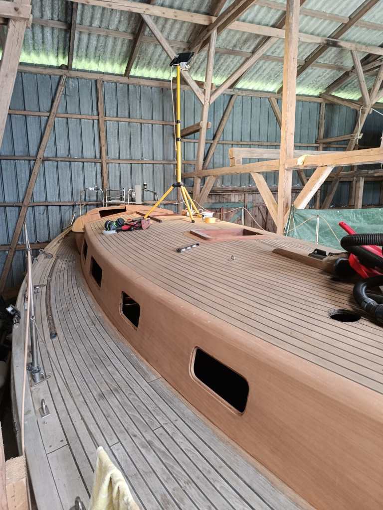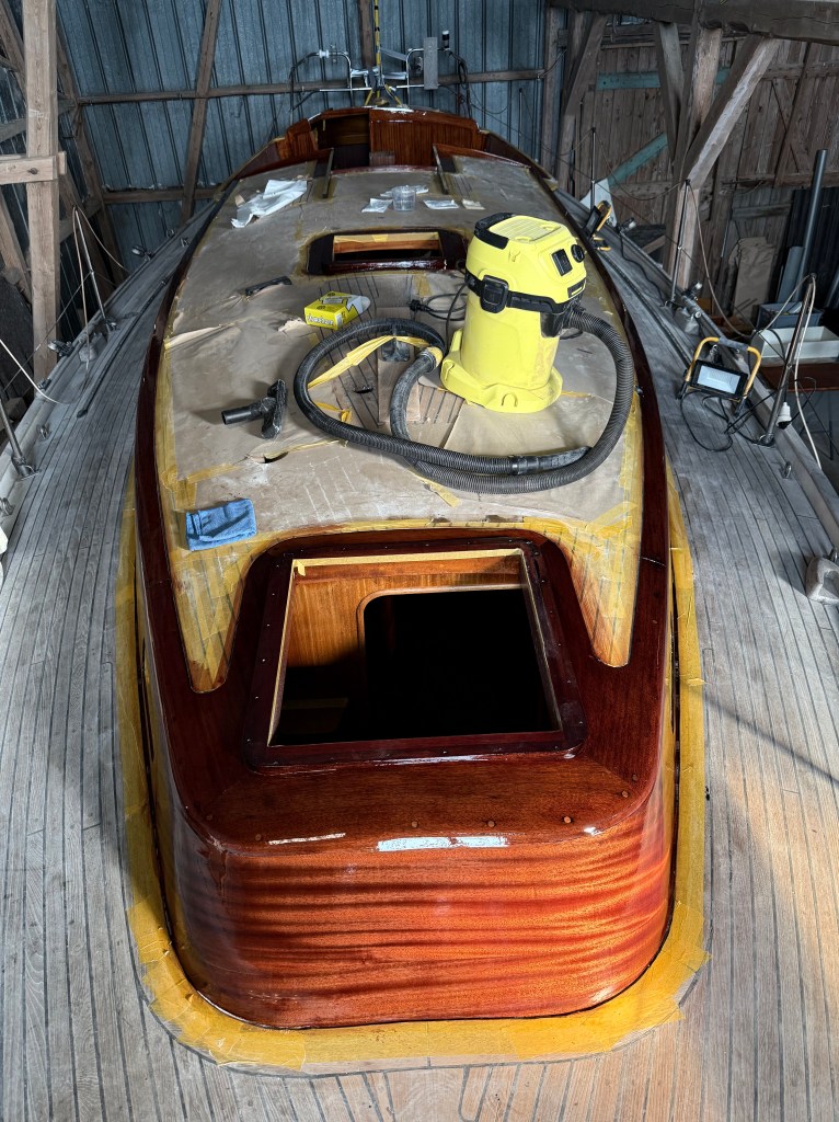 …die Winschenbretter zu demontieren. Ja, und alles andere, was irgendwo auf den Lack geschraubt ist: Beschläge, Messingleisten, Schiebluken, etc. pp.