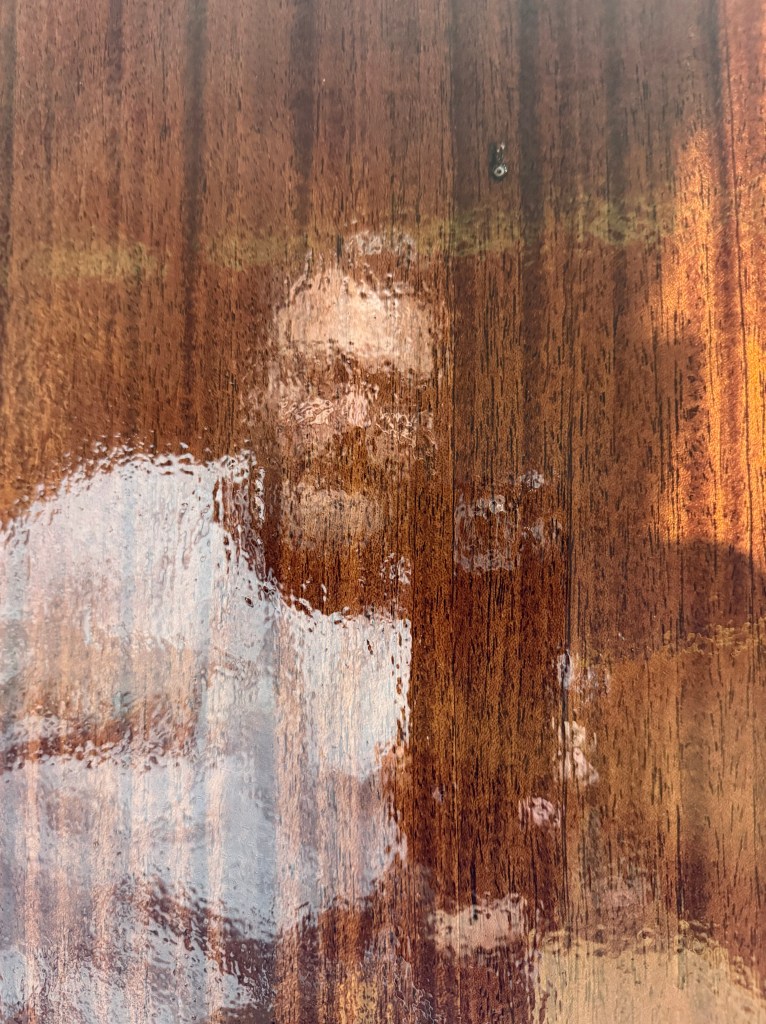 Der Lack wird mit Heißluftföhn und Ziehklinge abgezogen. Das Ergebnis ist noch sehr fleckig, was sich beim schleifen aber sehr schnell gibt. Insgesamt ist es eine meditative Arbeit, die relativ gut von der Hand geht.